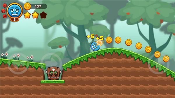玩法简单的,操控滚球左右移动和跳跃,收集三颗星星就能过关啦,收集的硬币也能用来买皮肤和道具~