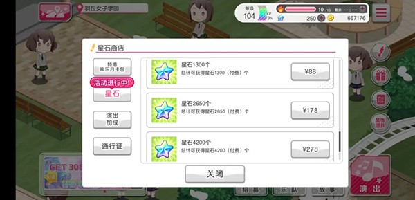 (4)试炼演出活动:活动故事可获得共计350免费星石,活动报酬共计可获得350免费星石,活动结算按名次可获得50~500不等的免费星石(我通常混一个250星石)。
