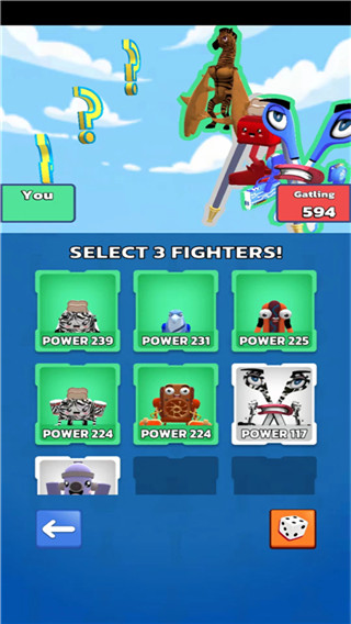 7、紧接着选择当前所融合的物种进行作战,只能选择三个,选择好后点击下方的fight按钮。