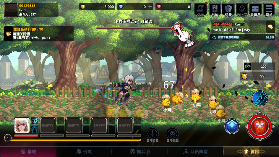异世界佣兵团养成记(Otherworld Mercenary Corps)是一款以穿越异世界为背景的RPG冒险养成游戏,玩家将扮演一名被召唤到神佑泰拉大陆的普通上班族,你将成为佣兵团长,需通过招募各具特色的英雄,并完成任务与副本来提升队伍等级、强化装备技能,同时探索森林、城堡等多样的地图场景,寻找隐藏的宝箱与任务。
