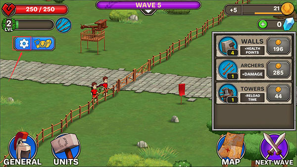 升级城墙可以增加城墙的血量,敌人就更难突破你的防线,升级弓箭手可以增加防御伤害;升级塔楼和投石机可以加快箭楼和投石机的射速。