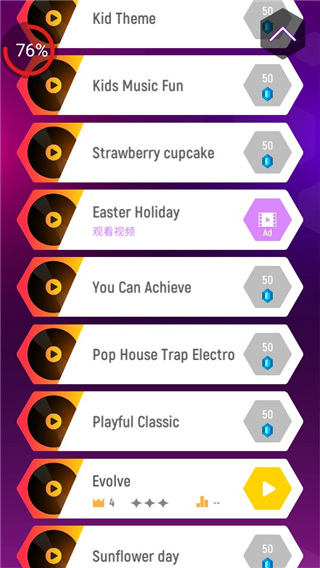 4、所有音乐关卡全部免费,随你挑选,带你遨游音乐海洋。