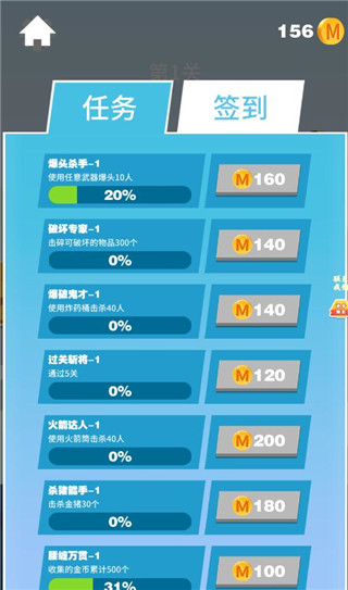 4、通关可以获取金币奖励,可以用来解锁更多更强的枪支