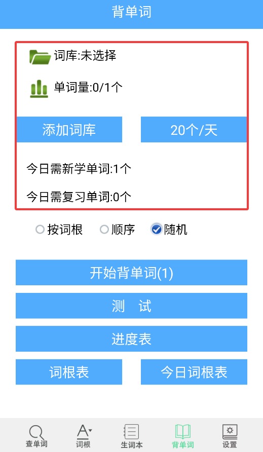4、接着我们就能够选择需要学习的词库进行添加、导入了,然后在回到背单词界面开始学习就行了。