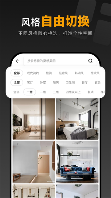 提供现代简约、北欧、新中式、法式等多种风格的精美图册,通过标签分类与主题集中呈现,让用户在整理想法时更有方向,也能便于与装修人员沟通具体需求。