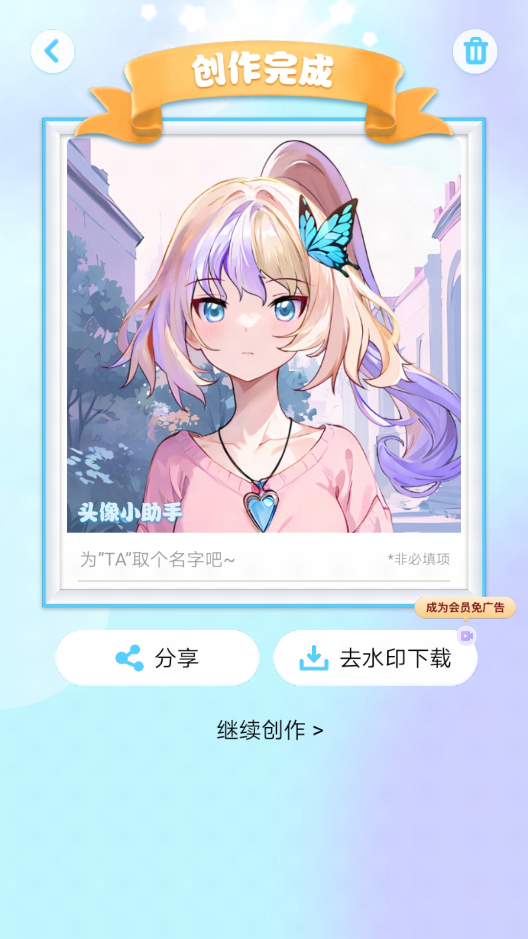 4、创作完成后,可以进行分享和去水印下载,以上就是头像小助手app的使用方法了。