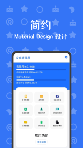安卓清理君是一款专为Android用户设计的系统清理软件,旨在提升用户的使用体验。该软件遵循Material Design设计理念,界面简洁易用,功能强大,能够帮助用户有效清理手机中的垃圾文件,进行系统优化,确保设备运行流畅。