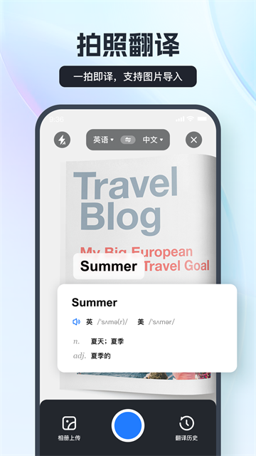 【拍照翻译】拍摄图像并识别翻译文字,适用于旅行和日常使用。